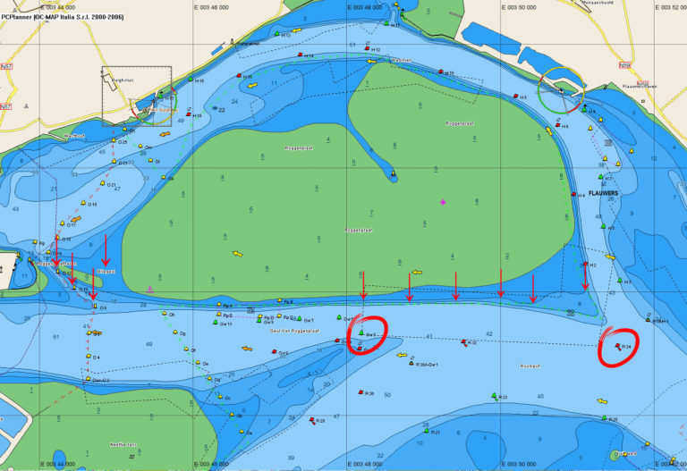 Er mag dus weer gevaren worden. Zeker voor de bootvissers die vanuit Burghsluis vertrekken is dit een mooie “afsnijder” op weg naar de Roompotsluis. De diepe Oliegeul voert heel dicht langs de veiligheidslijn van de stormvloedkering. Als alternatief is er ook nog de “oude” Oliegeul, een half mijltje oostelijker, maar die is aanzienlijk minder diep. De noordzijde van de Geul van Roggenplaat vormt een drempel waarvan het diepste punt van de drempel op 2,30 m water boven de drempel staat als de waterstand gelijk is aan NAP.