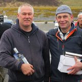 Toen ik ‘s middags aan de helling kwam, was ik op gespannen, moet ik toegeven. Want hoewel je wel ongeveer kan inschatten hoe de vangsten zullen zijn, zeker weten doe je het nooit het blijft tenslotte vissen zonder vangstgarantie! Tegen drie uur werd de eerste uienzak ter weging aangeboden en deze noteerde 4,1 kg vis. “Een schamel beetje”, vonden de mannen die dit bij elkaar hadden gevist. Langzamerhand kwamen er meer boten terug en dus zakken naar onze weegtafel. Die 4,1 kg is lange tijd de zwaarste zak gebleven maar zoals vaak het geval is, zat het venijn ook deze keer in de staart. De Delta 1604 wist 2,5 kg meer te vangen, maar de zwaarste zak kwam deze keer van vader en zoon van Zweden: maar liefst 7,85 kg wisten deze heren aan de wal te brengen. Daarmee waren zij dan ook de terechte winnaars van de dag en is de strijd om de felbegeerde Deltacup weer volop losgebarsten.