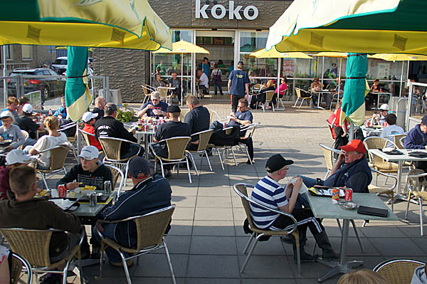frietjes eten bij Koko aan de ferry-terminal van Vlissingen. Iedereen